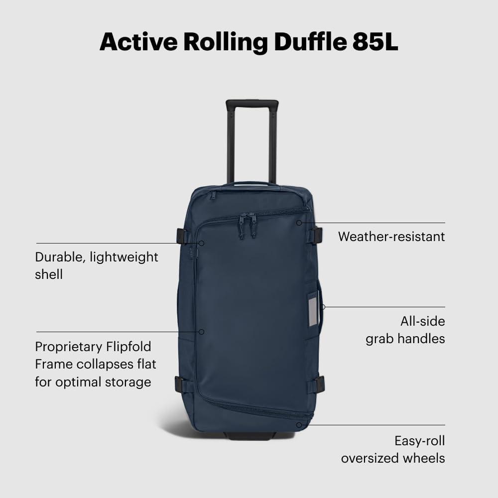 Away Active Rolling Duffle 85L – Large Travel Duffle Bag with Wheels, Durable Checked Luggage Suitcase for Men & Women, Foldable Weekender Bag, Jet Black(Navy Blue)