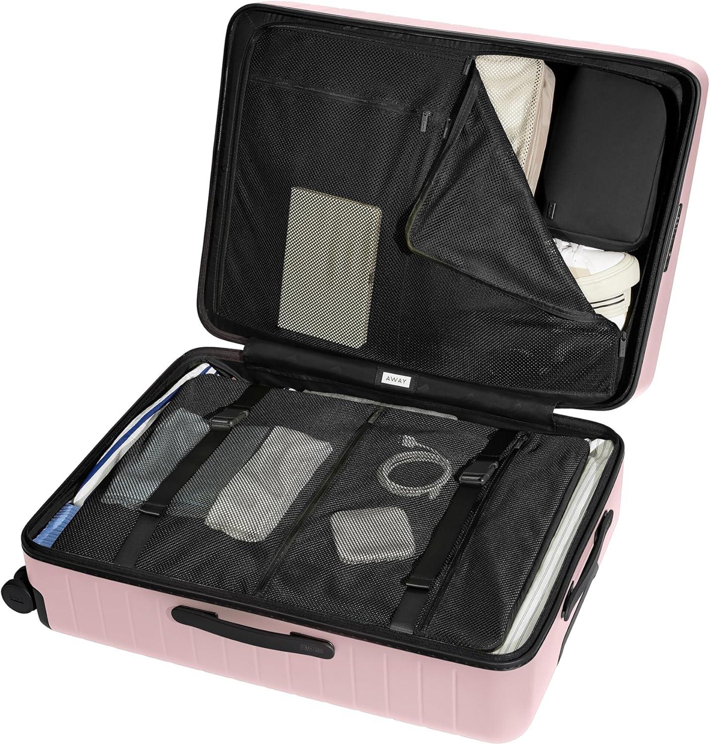 Lightweight and durable design: Away’s Classic luggage is designed with a durable lightweight 100% polycarbonate shell. Measuring 17″L x 13.7″W x 31.3″H (including wheels), with an internal measurement of 26.9″ x 19.7″ x 10.6″, this travel bag is prepared for long-term travel.