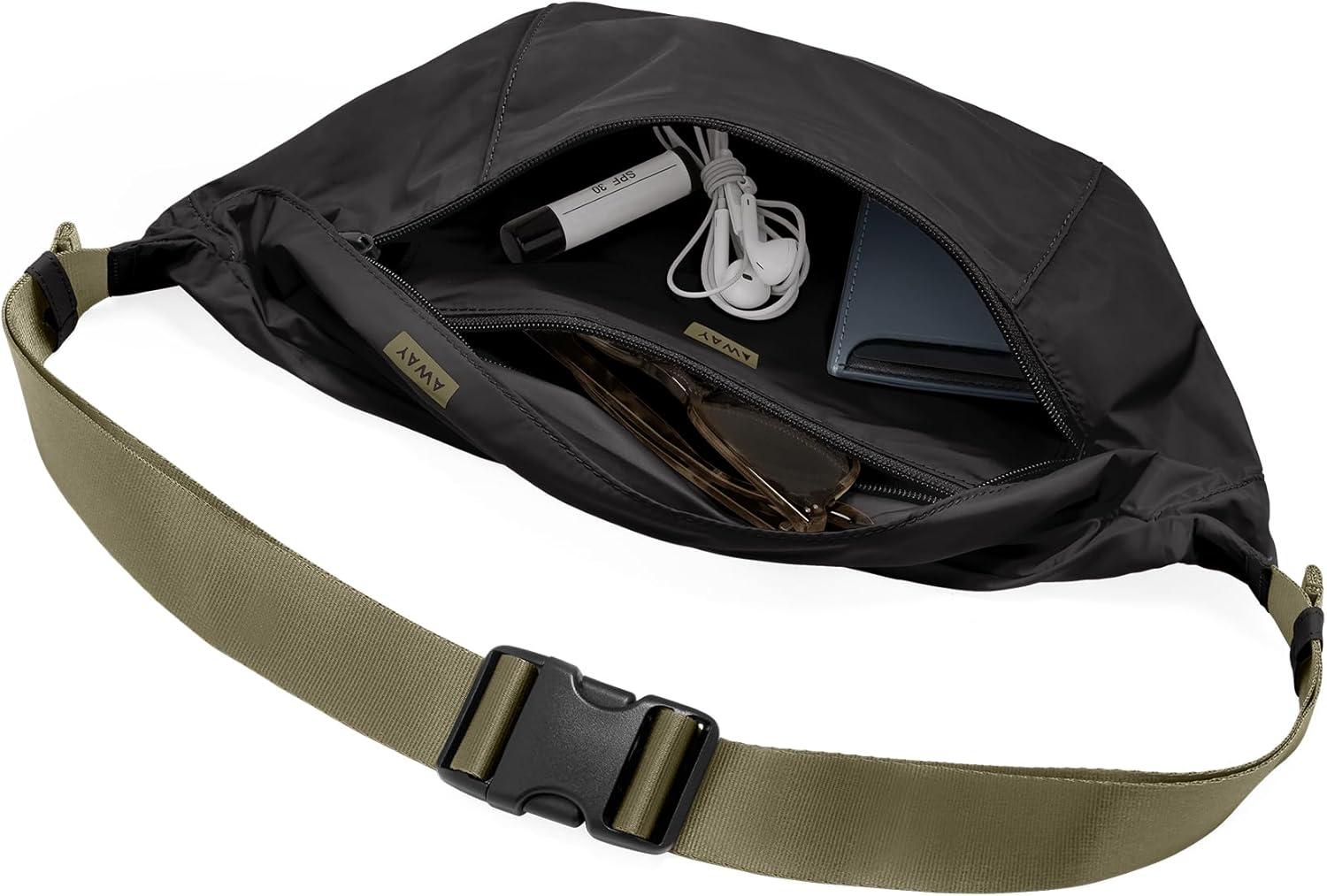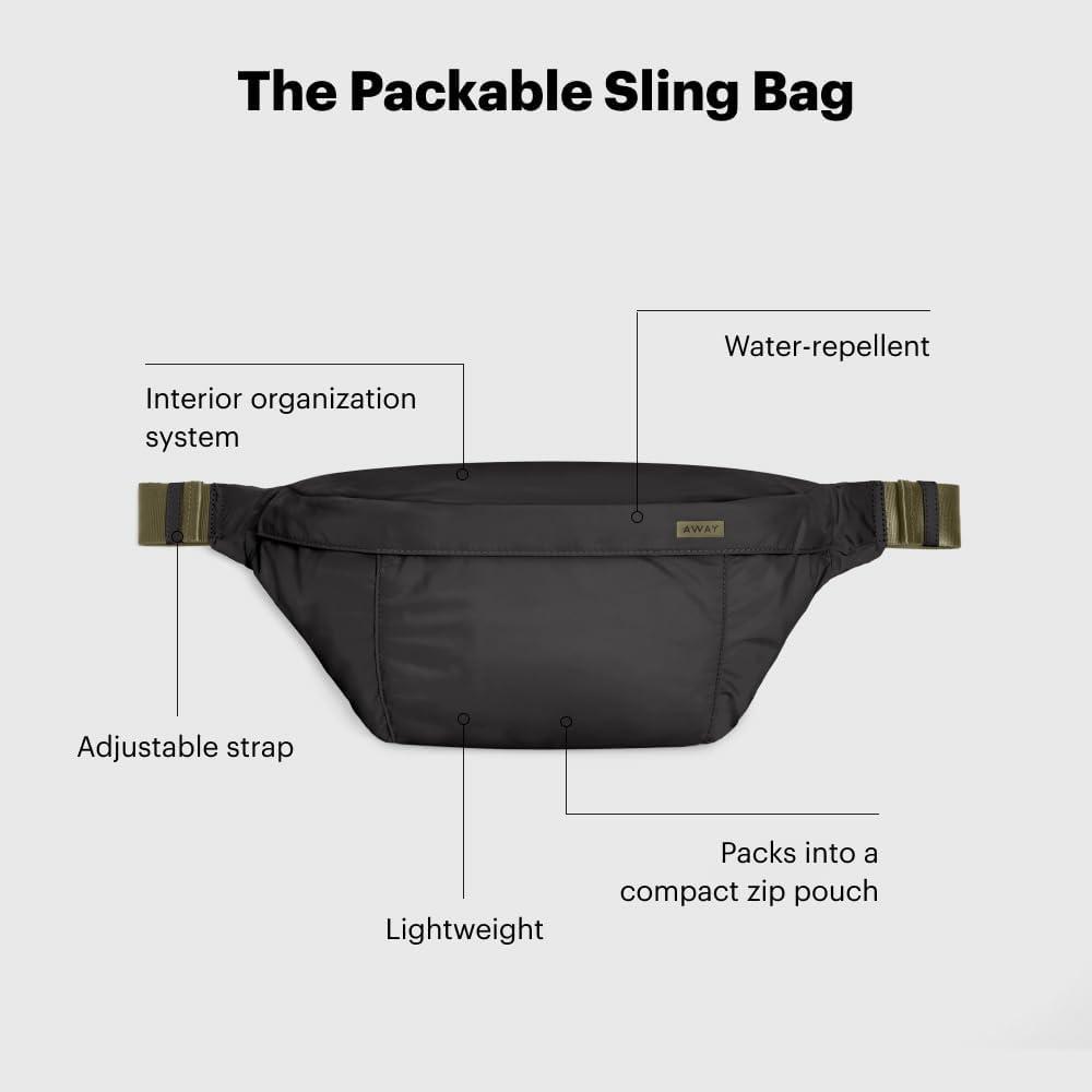 Away Packable Sling Bag – Versatile Lightweight Crossbody Bag for Travel, Water Resistant Waist Pack for Women & Men, Ideal Foldable Travel Essential, Jet Black(Jet Black)