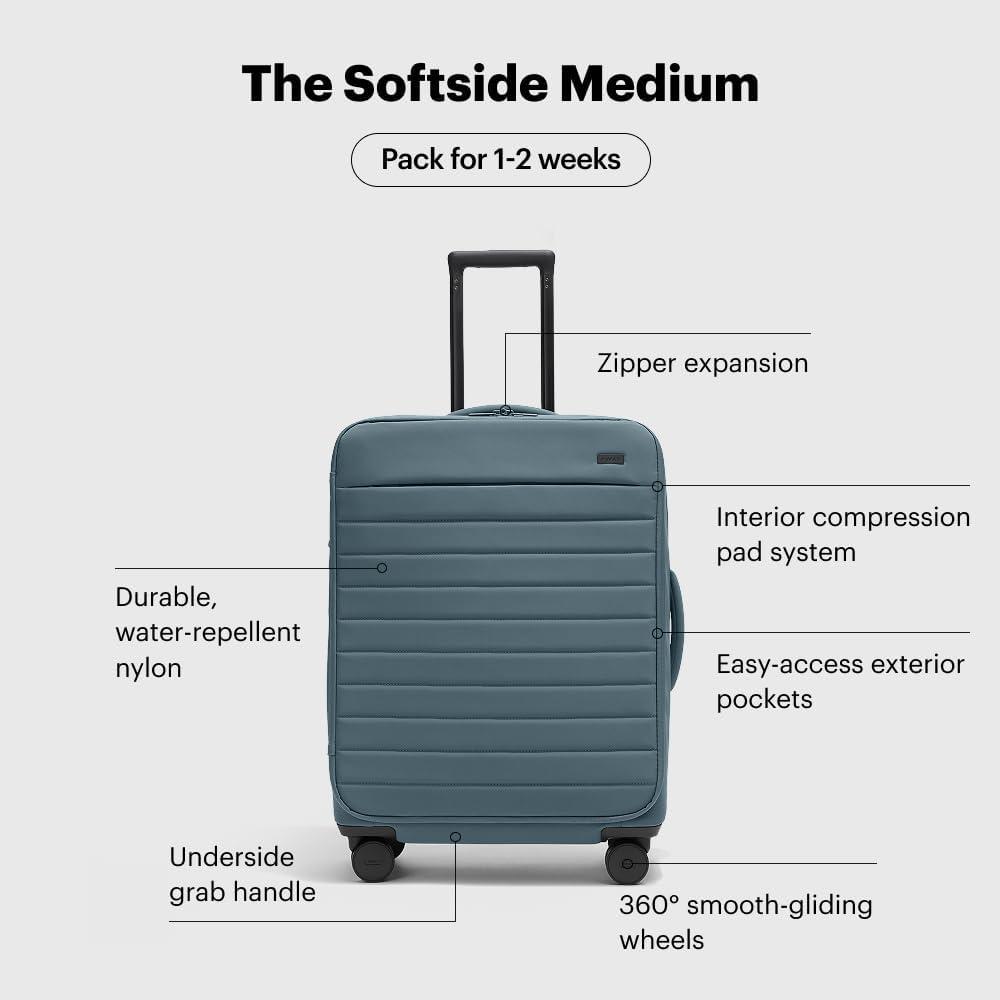 Away Softside Medium Checked Suitcase, 26 Inch Lightweight, Expandable Luggage For Men & Women, Durable Nylon Exterior, TSA Approved Lock, Ideal For Trips 1-2 Weeks, Coast Blue(Coast Blue)