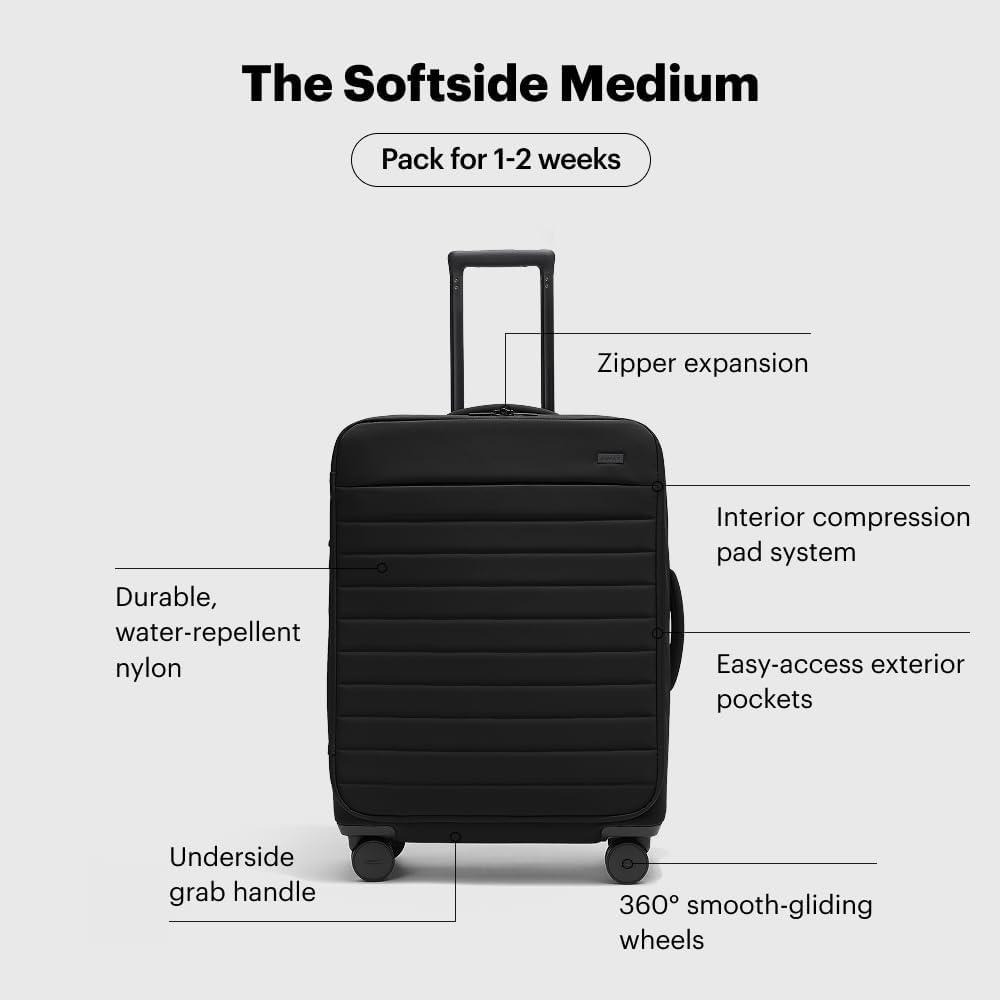 Away Softside Medium Checked Suitcase, 26 Inch Lightweight, Expandable Luggage For Men & Women, Durable Nylon Exterior, TSA Approved Lock, Ideal For Trips 1-2 Weeks, Coast Blue(Jet Black)
